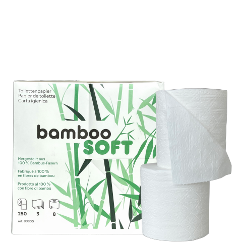 BambooSoft wird zu 100% aus FSC-zertifizierten Bambus-Zellstoff hergestellt. Das gilt auch für die Verpackung, welche zu 100% plastikfrei ist.